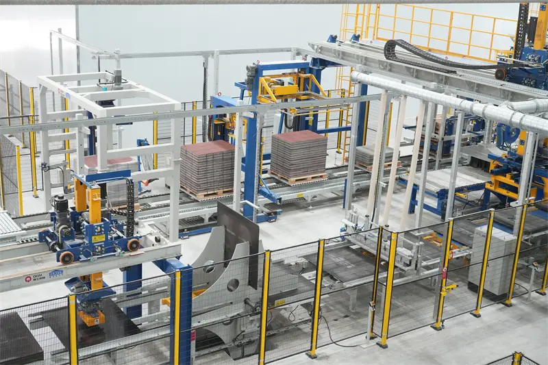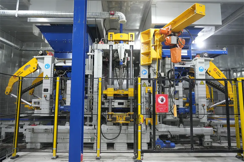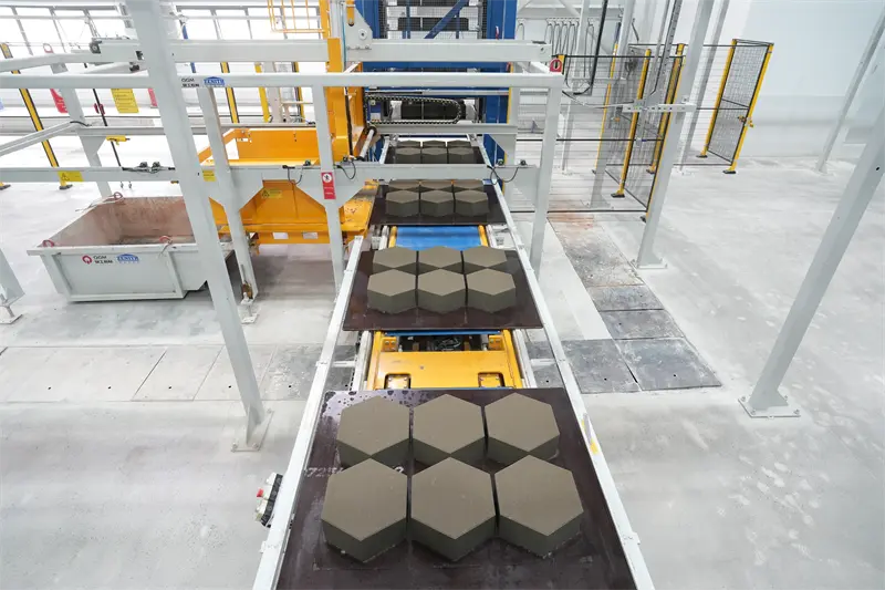 Основне обладнання виробничої лінії використовує формувальну машину ZN1500-2C, нещодавно розроблену компанією QGM, яка поєднує ряд запатентованих технологій. Обладнання оснащене інтелектуальною системою швидкої зміни форми, яка може швидко перемикатися на виробництво різноманітних продуктів, таких як тротуарна цегла та проникна цегла; заснований на промисловій інтернет-платформі, він реалізує моніторинг у реальному часі та інтелектуальний аналіз виробничих даних, скорочує час реагування на попередження про збій обладнання на 60% і значно покращує ефективність експлуатації та обслуговування.