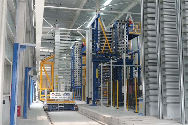 Виробнича лінія машин QGM має повністю автоматизовану конструкцію та оснащена сучасним обладнанням, таким як сервосистема палетування та повністю автоматична система автомобіля матері та дитини, незалежно розроблена QGM, реалізуючи повну автоматизацію процесу від обробки сировини до укладання готової продукції. Серед них високоточна система позиціонування та інтелектуальний робот-палетувальник забезпечують стабільне та ефективне виробництво, зменшуючи загальне споживання енергії на 25% і витрати на робочу силу на 40%.